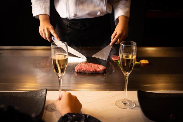 【1ドリンク付き!神戸牛2種食べ比べコース】メインステーキ「サーロインとシャトーブリアン」の食べ比べ、デザートなど全8品■Kobe beef sirloin tasting course8品