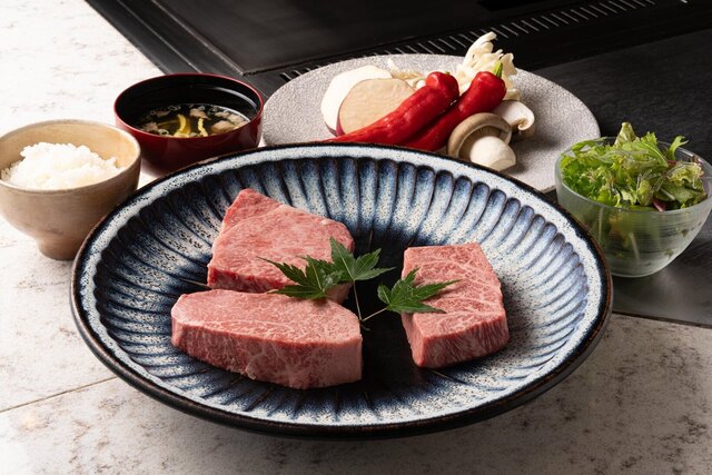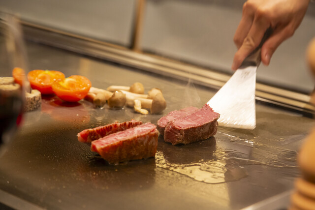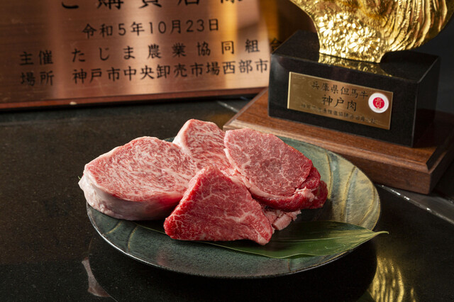 【記念日コース】メインステーキ「極上赤身と別格希少部位とサーロイン」の食べ比べ、デザートなど全9品■Kobe beef tasting 3 types"anniversary course"9品