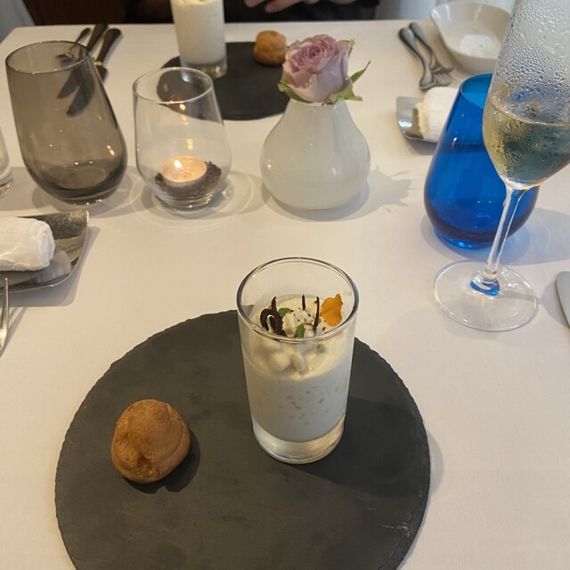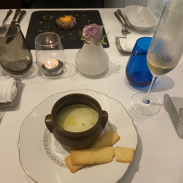 夙川駅より徒歩3分の住宅街に立地する当店は、食の都「ボーヌ」で修行を積んだシェフによる本格フレンチをご提供。身に付けた技術と知識をもって、ヨーロッパから仕入れた食材と自ら買い付けた旬素材を巧みな一皿へ変えます。そして、店内にはブルゴーニュワインに特化したワインセラーを完備。お好みに合わせて、上質な1本をご提案いたします。ダークブラウンの落ち着いた空間で、思い出に残るひとときをお過ごしください。