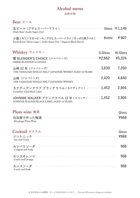 カード可(VISA、Master、JCB、AMEX、Diners)