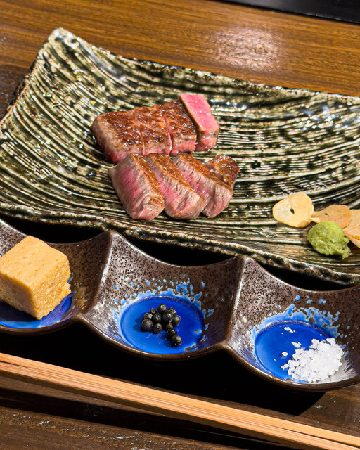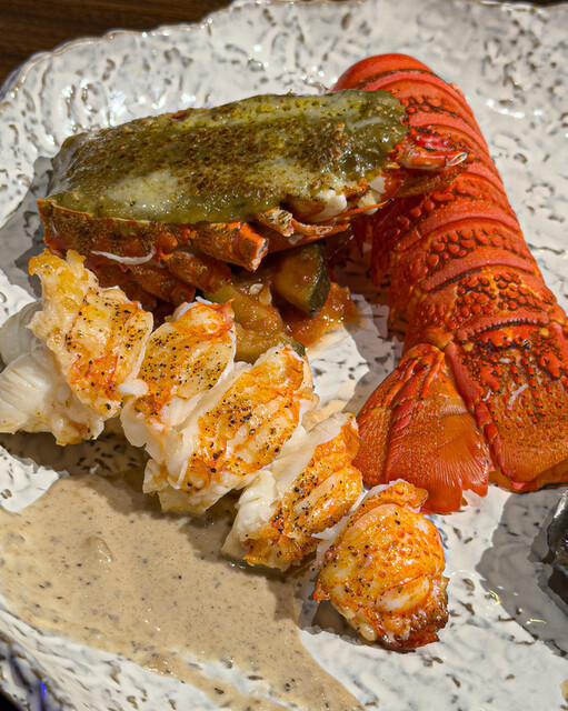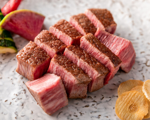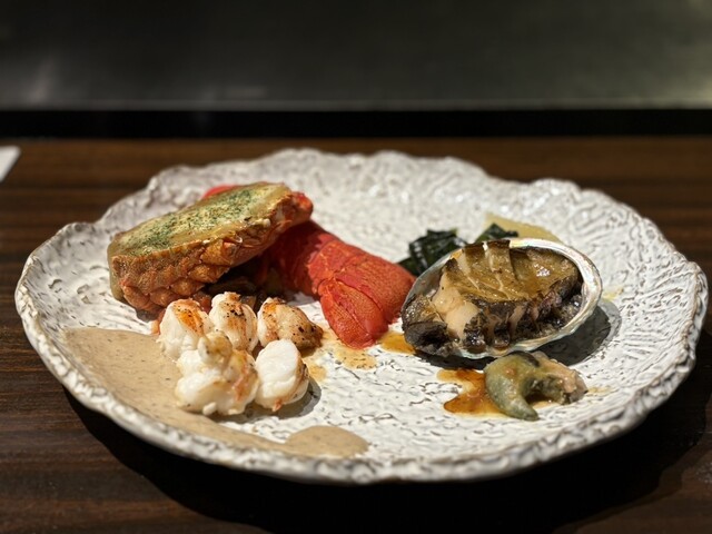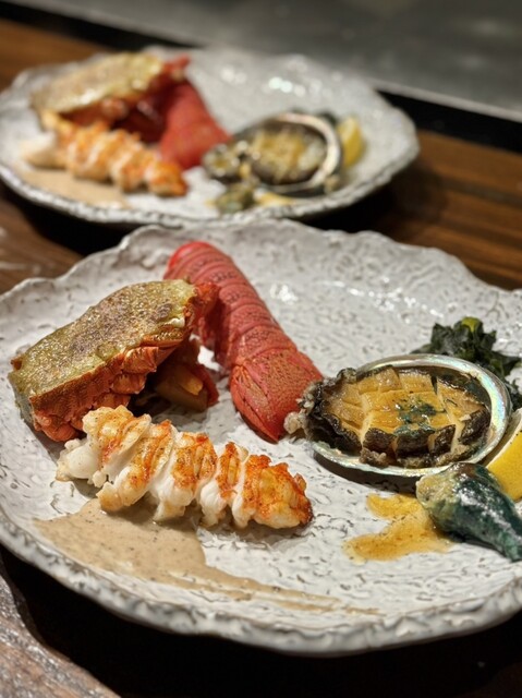 当店では日々厳選した最高級A5ランク黒毛和牛をご用意しております。メインでは赤身のステーキをご用意しており【サーロイン】【ヒレ】【シャトーブリアン】へと別途金額を頂きまして変更が可能となります。アワビやイセエビ等の海鮮もご一緒にお楽しみいただけます!接待や記念日など様々なシーンでご利用いただけます。
