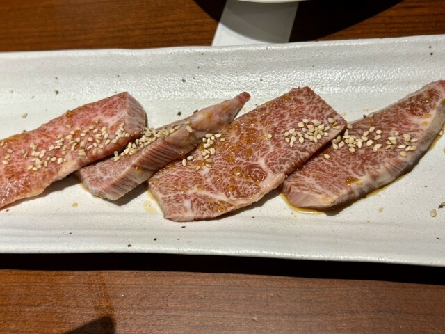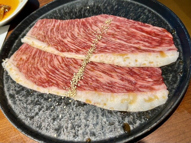 創業から50年という歴史の中で培ってきた肉へのこだわりと目利きで、日本各地から良質な和牛のみを厳選して仕入れています。人気はきめ細やかなサシと深い旨味が自慢の「棒ハラミ」、柔らかい肉質とほどよい脂がクセになる「上ハラミ」。最高級A5ランクの松阪牛は、最上級部位シャトーブリアン、ヒレをラインナップ。日替わりで希少部位の入荷もございますのでお気軽にお尋ねください。