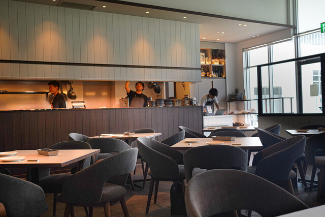 ウェスティンホテル横浜、Zepp横浜の間に位置する当店は、女子会や接待にも最適なグルメが集う施設の1階にございます。シンプルな白を基調としたお洒落な店内には50席、開放感溢れるテラス席を16席ご用意。オープンキッチンからスパイスの薫りが漂う、五感で愉しめるダイニングです。実力派のシェフが腕を振るう一流の味を、落ち着いた雰囲気のなか肩肘張らずにご堪能いただけます。ぜひ、多彩なシーンにお越しください。