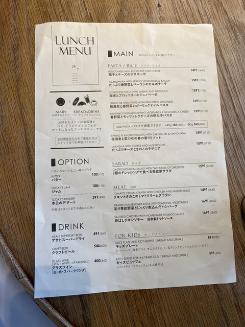 440円 ※17時以降のお客様にアミューズ(お席料)をお出ししてます。コースはお席料込みの金額となっております