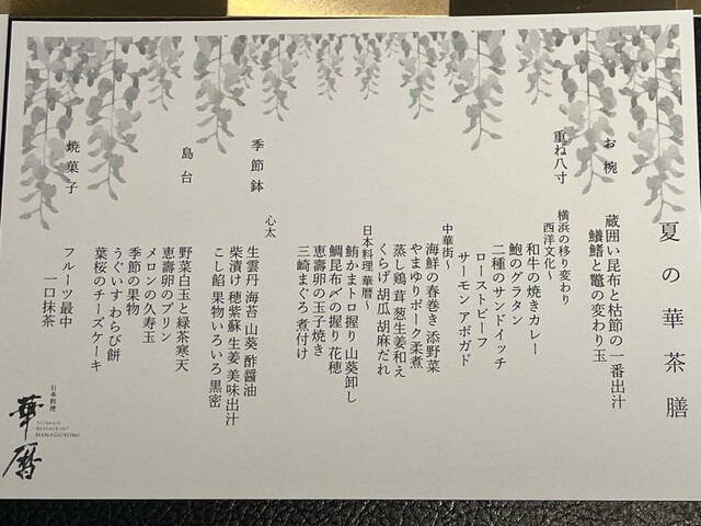 ・2名個室 3室 6席 ・4名個室 8室 32席 ・6名個室 4室 24席 ・10名個室 1室 10席※ ※10名個室の利用について6名様以上から予約が可能です。夕食17,000円(税抜)以上のコース料金利用より承ります。 個室料として別途20,000円(税別)
