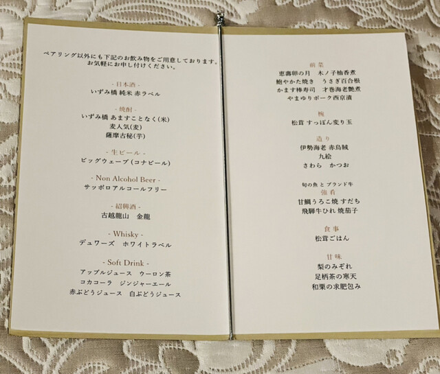 ・2名個室 3室 6席 ・4名個室 8室 32席 ・6名個室 4室 24席 ・10名個室 1室 10席※ ※10名個室の利用について6名様以上から予約が可能です。夕食17,000円(税抜)以上のコース料金利用より承ります。 個室料として別途20,000円(税別)