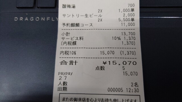 QRコード決済可(PayPay)