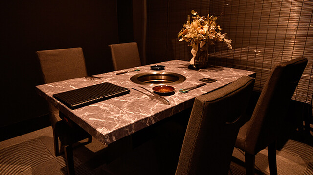 モノトーンを基調とした、高級感あふれる店内。個室プライベートな空間のため、ゆったりと寛ぎながらお食事をお楽しみいただけます。また、用途に応じ使いやすいテーブル席もご用意しております。接待などの大切な会食はもちろん、デートにも重宝するとっておきの一軒です。ペットシートをご持参で、ペット同伴のご来店も可能◎最寄り駅からのアクセスも良いため、お仕事帰りやお祝いごとなど幅広いシーンでご利用いただけます。