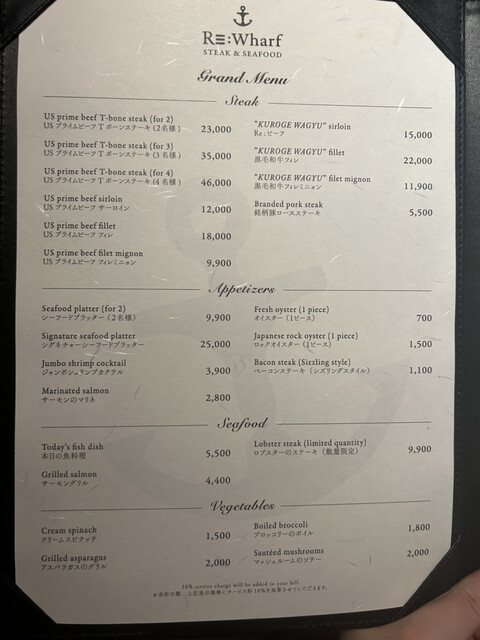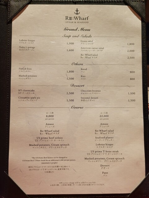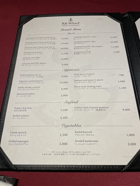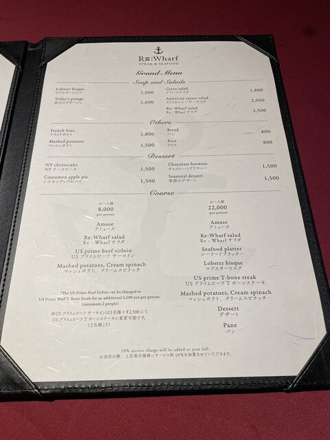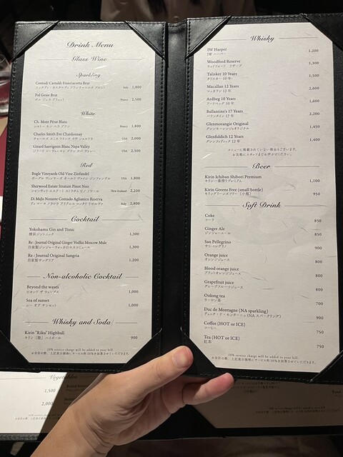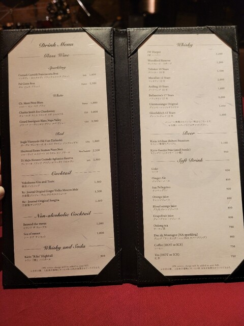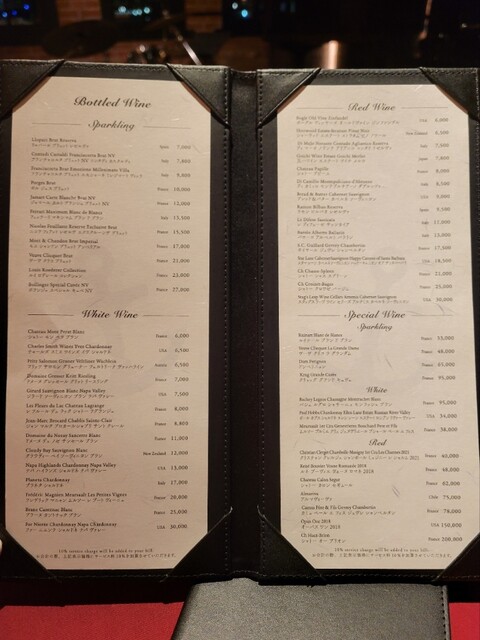 サービス料10%、席によりチャージ料あり