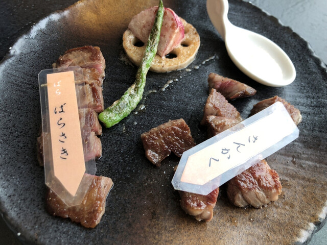 横浜で葉山牛を味わえる数少ない店の一つである当店。幻の和牛ともいわれる葉山牛は、今や全国トップレベルのブランド牛に匹敵するほど価値が高騰しています。生産地にほど近い当店では、地元ならではのネットワークを駆使し、その貴重な素材を半頭買いすることに成功。バリエーションに富んだ葉山牛メニューを、鉄板焼スタイルとしてはかなりリーズナブルに提供しています。近海物を中心に素材を吟味した海鮮料理もおすすめです。