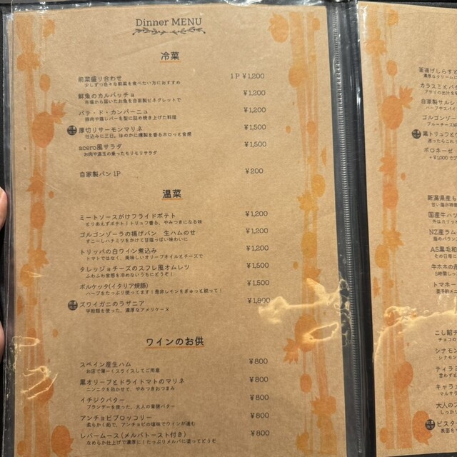 ディナータイム、アミューズ(お通し)お一人様300円頂戴しております。