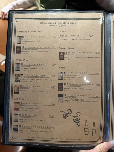 ※ワインの持ち込みの際抜栓料として1本2500円いただいております。