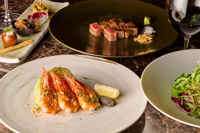 熟練シェフの迫力ある調理シーンが楽しめる鉄板焼。素材の焼ける音や芳ばしい香りなど、五感を楽しませるおもてなしこそ鉄板焼の醍醐味です。黒毛和牛や国産大伊勢海老などの厳選素材を目の前の鉄板で焼き上げ、一番美味しい状態でご提供いたします。