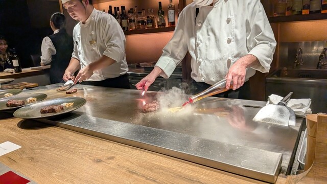 熟練シェフの迫力ある調理シーンが楽しめる鉄板焼。素材の焼ける音や芳ばしい香りなど、五感を楽しませるおもてなしこそ鉄板焼の醍醐味です。黒毛和牛や国産大伊勢海老などの厳選素材を目の前の鉄板で焼き上げ、一番美味しい状態でご提供いたします。