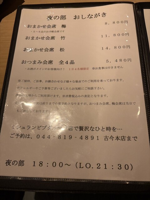 L.O. 料理21:00 ドリンク21:30