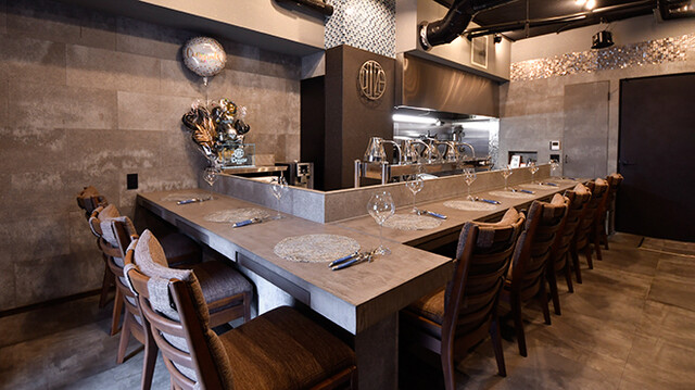 黒とグレーを基調とした店内は、シックで落ち着いた雰囲気が漂う大人の隠れ家です。ランチ・ディナーともに1日1組、限定8席のカウンター席のみのため、プライベート空間で贅沢な時間をお過ごしいただけます。彩り鮮やか逸品を味わいながら至福のひと時をどうぞ。