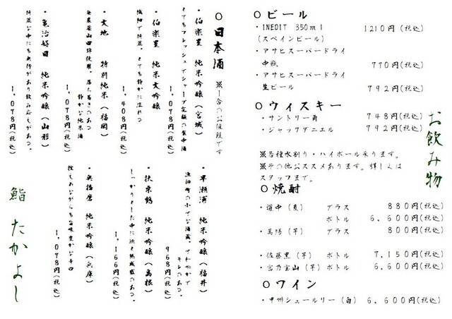 L.O. 料理21:00 ドリンク21:30