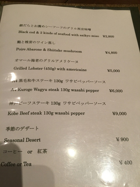 カード可(VISA、Master、JCB、AMEX、Diners)