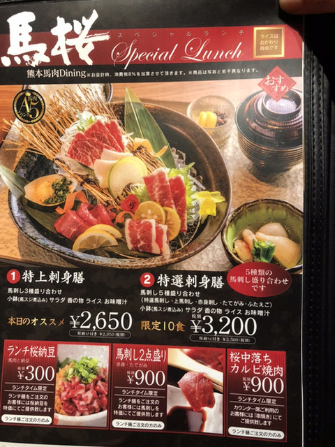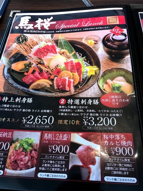昨今、熊本県内外で外国産馬肉の流通が増えていってる中でも、美味しい国産肥育馬肉にこだわり続ける馬肉料理の専門店です。馬刺しだけでなく、焼肉、しゃぶしゃぶ、ステーキ、寿司、熊本の郷土料理など豊富なメニューをご用意しております。 熊本県産の焼酎、日本酒なども豊富にご用意しております。 御一人様から団体様、お子様連れのご家族、取引先との接待や記念日デートなど様々な大切なシーン等でご利用いただいております。熊本繁華街の中心部に位置しアクセスも良好です。