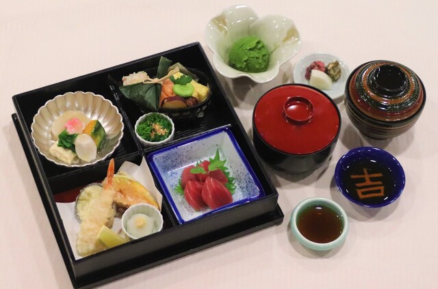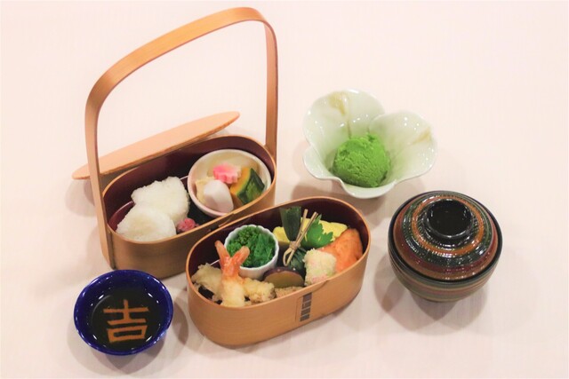 ・弁当(鮪造り、天婦羅、焼魚、野菜煮、など)