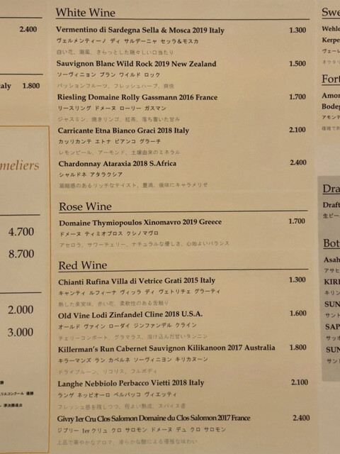ワインあり、カクテルあり