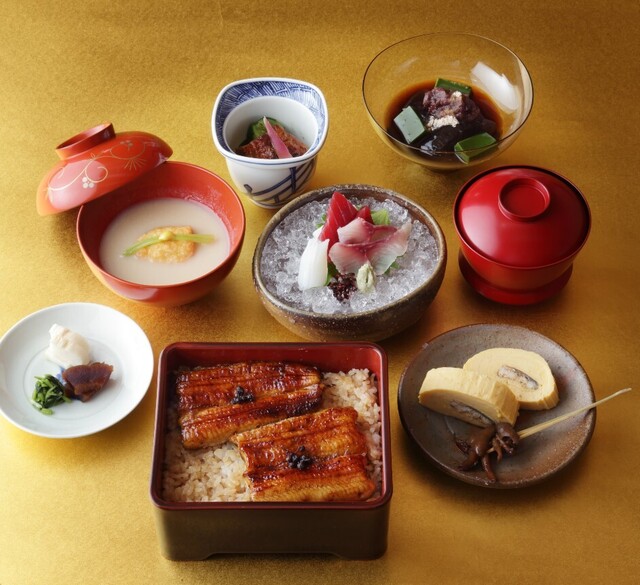 名物源平焼きをはじめとしたうなぎ料理が充実。丁寧に下処理をしたうなぎは関東風に背開きをし、一度蒸した後に焼き上げます。ふっくらとした身の食感をご堪能ください。また、名物の「うなぎ姿ずし」や「うな重」、絶品「うなぎ茶漬け」はお持ち帰りいただけますので、お土産などにも重宝されております◎お気軽にお申し付けくださいませ。