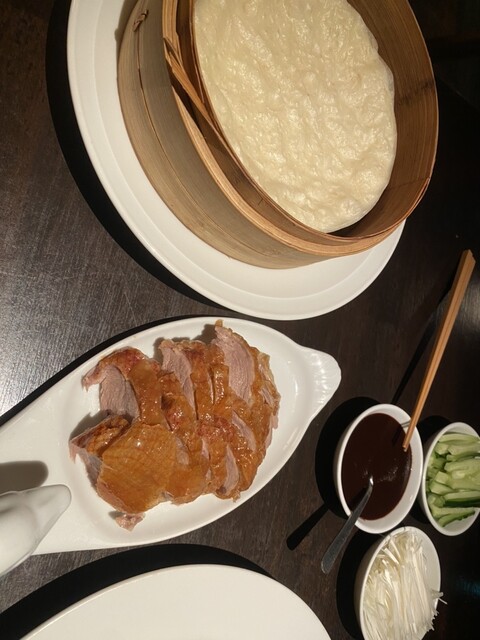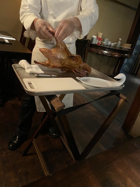 古い洋館と町家の連なった独特な雰囲気の中で、自家窯焼き北京ダックや点心など中国家常菜の数々