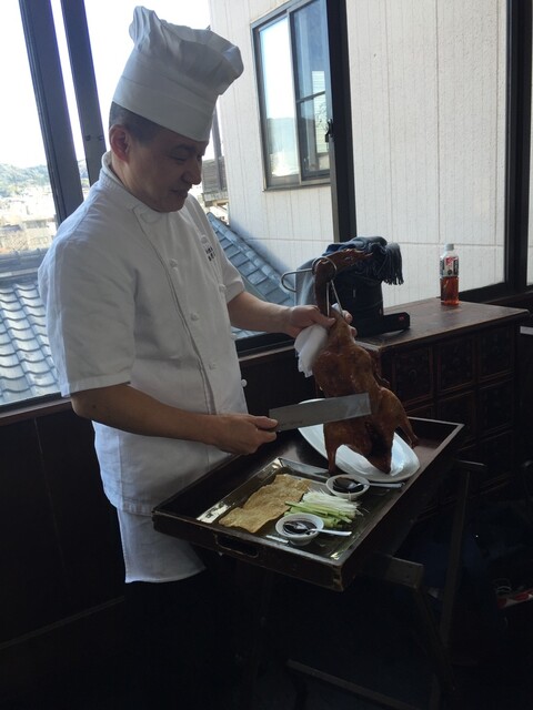 古い洋館と町家の連なった独特な雰囲気の中で、自家窯焼き北京ダックや点心など中国家常菜の数々