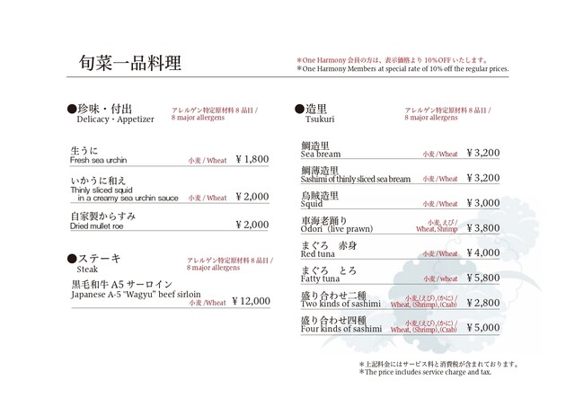 カード可(VISA、Master、JCB、AMEX、Diners)