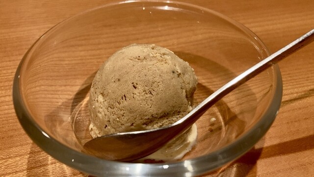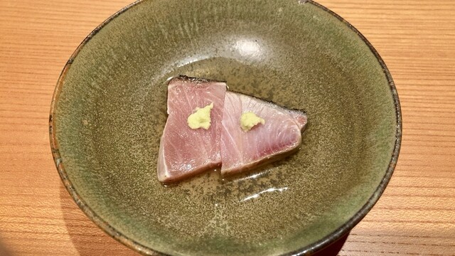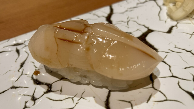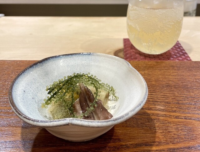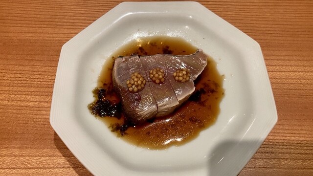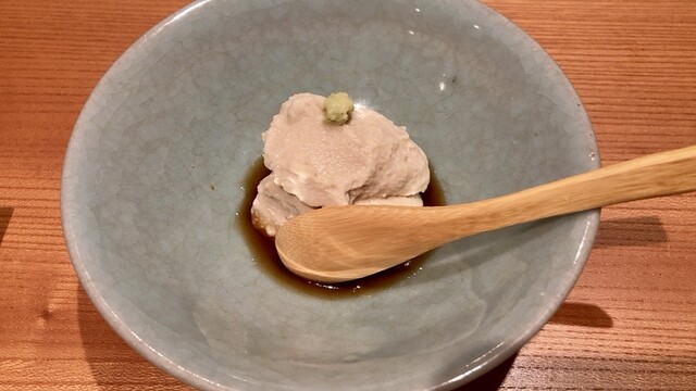 店主が市場で直接仕入れてくるオススメのネタは、どれも塩をあてるなどしてひと手間加えたものばかり。鮨以外の和食も手間とアイデアに溢れており、名物『うにあいすと胡麻豆腐』は西京味噌と雲丹の香り、そして甘じょっぱさが、想像を裏切る味として口の中に広がります。それを肴に飲めるのは店主の故郷・山口の地酒。大人の舌を満足させてくれます。