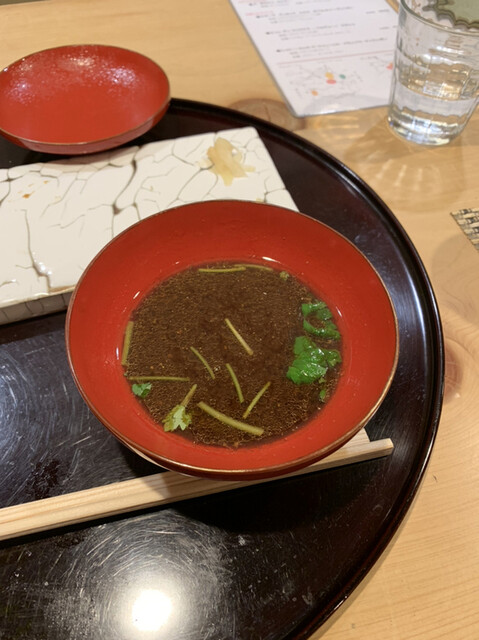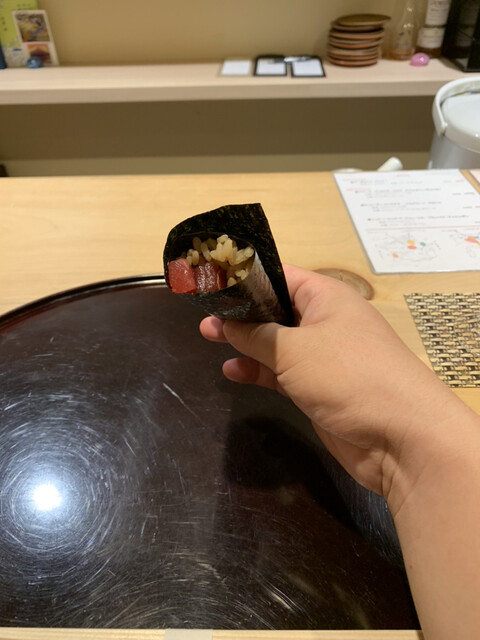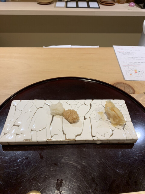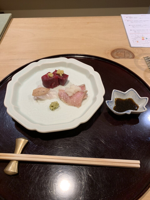 店主が市場で直接仕入れてくるオススメのネタは、どれも塩をあてるなどしてひと手間加えたものばかり。鮨以外の和食も手間とアイデアに溢れており、名物『うにあいすと胡麻豆腐』は西京味噌と雲丹の香り、そして甘じょっぱさが、想像を裏切る味として口の中に広がります。それを肴に飲めるのは店主の故郷・山口の地酒。大人の舌を満足させてくれます。