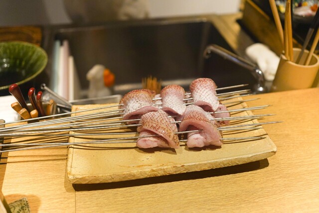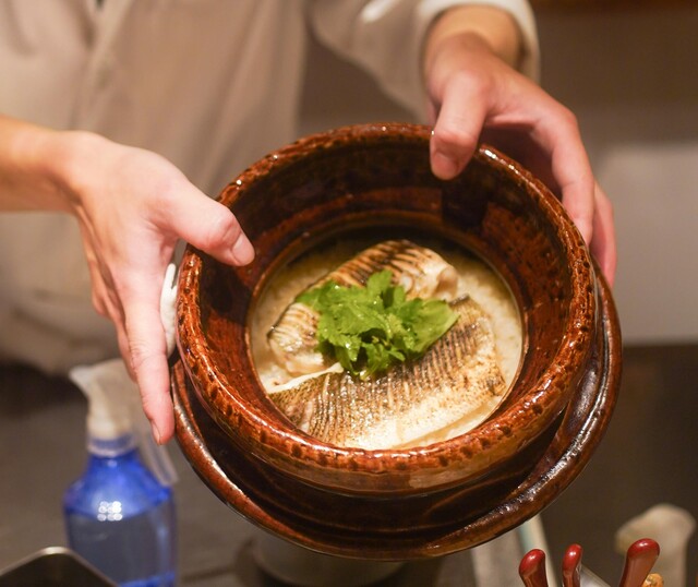 素材のポテンシャルを極限まで引き出した「炉」を使った料理がこの店の自慢。師匠から譲り受けたという陶器づくりの「炉」に、炭は生産者にもこだわった紀州の備長炭を使用。地元である三重県の海女さんから直接仕入れた鮮度の良い海の幸や、A5ランク黒毛和牛など、旬の厳選素材を一つひとつ丹念に焼き上げた逸品が愉しめる。市場ではあまり出回らないような珍しい食材が手に入ることもあるといい、運がよければ出会えることも。