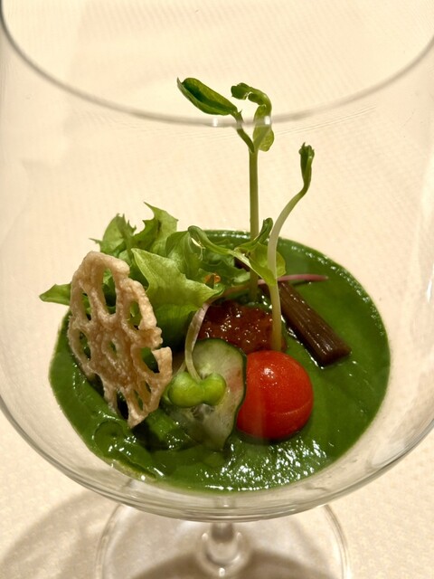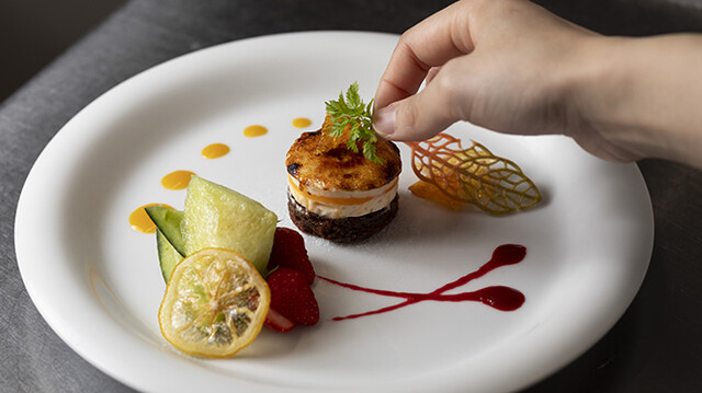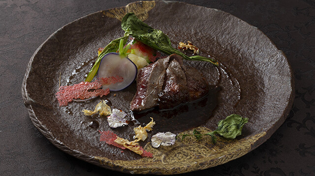 当店で使用するお野菜は、京都・園部の契約農家より届く朝採れのもの。四季の恵みを感じる選りすぐりの旬彩と合わせ、遊び心溢れるお料理に仕立ててご提供いたします。視覚でも楽しめる彩り豊かなアミューズをはじめ、絶妙な加減で火入れし、一口頬張ると肉の旨味や香りが存分に広がる牛フィレのグリルステーキなどが人気です。ランチ、ディナー共に様々な味わいがゆったりと楽しめるコースを4種ご用意しております。