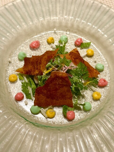奥村シェフの想いがこもる、朝採れ野菜を使用した一皿