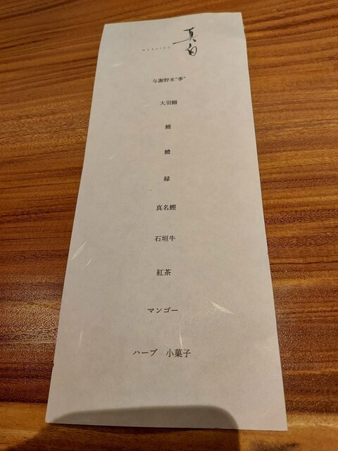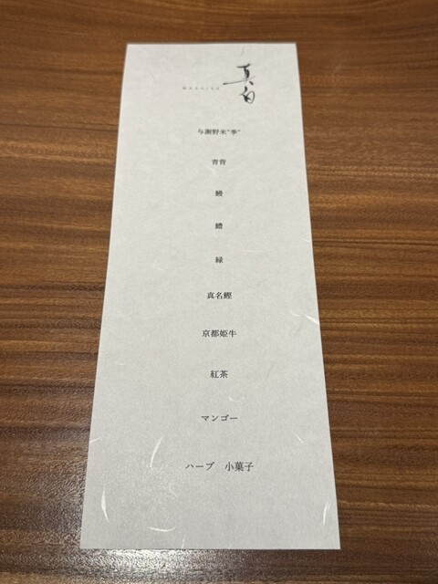 真白な空気で深呼吸し1日が始まる。毎朝生産者から生まれる最高の食材が私を待っている。その一瞬一旬の海や山の神々からいただく食材を目にしたら妥協はできない。漬・焼・煮・蒸・揚・発酵・熟成 幾多の調理法からはじき出す方程式は美味しく愉しい。美味しい時間を愉しんでいただきたい。皆様を迎え笑顔になっていただけるよう 日々精進日々感謝。ようこそ真白へ