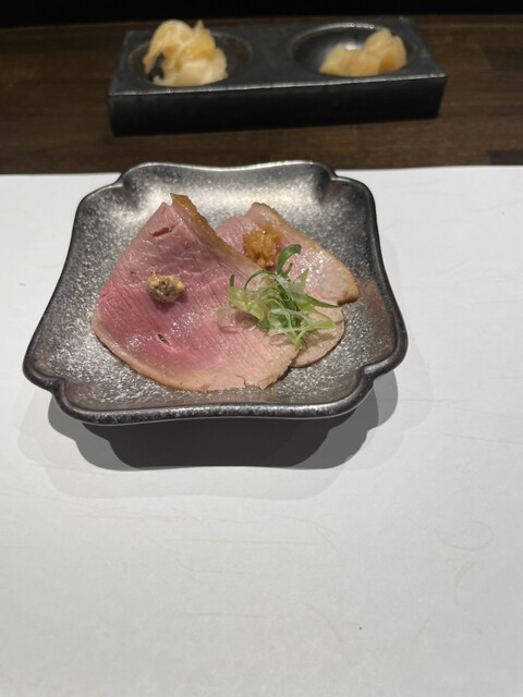 食材には、京都・舞鶴をメインとした旬の魚を使用。季節ごとに新鮮な魚を厳選して仕入れているため、滋味深い四季の恵みがお愉しみいただけます。合わせる赤酢のシャリは、兵庫から仕入れる赤酢と白酢を京都産のお米にブレンドしたもの。ネタの中でもおすすめは、一週間じっくりと寝かせ旨味を引き出した「熟成まぐろ」です。また京野菜を中心とした一品料理もご用意しており、鮨も一品も京都らしさ溢れるものをご提供いたします。