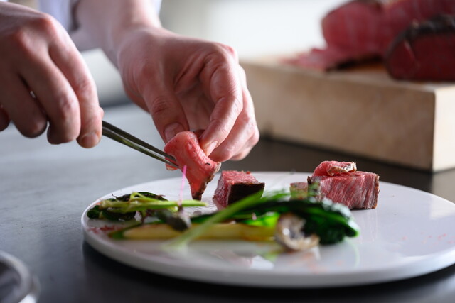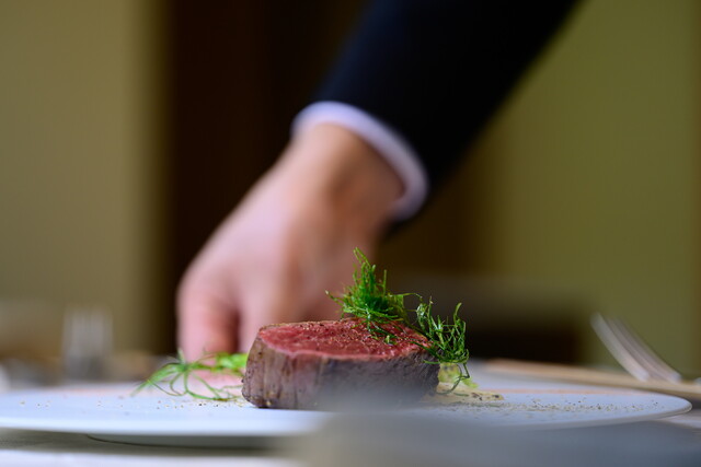 【ディナーコースC】季節の食材、黒毛和牛ローストビーフの6品コース6品