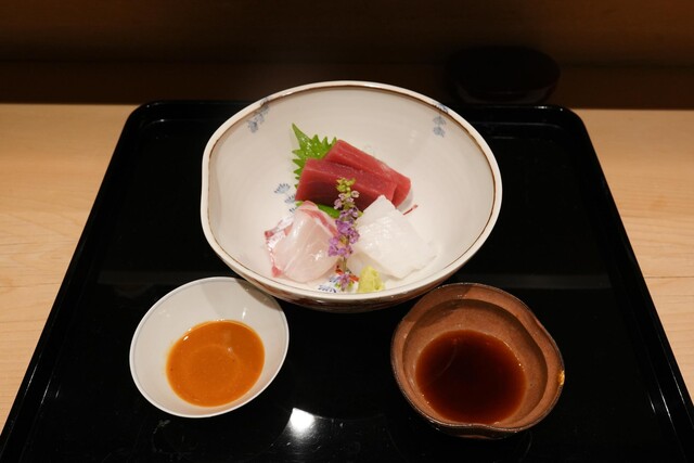 名店が立ち並ぶ祇園の街中に、ひっそりと佇む「八寸」。シンプルな暖簾の先には、清廉とした空気が漂う和の空間が広がっている。長年丹念に磨き上げられてきたであろう、堂々としたカウンターには全12席。古典的な設えが、どこか懐かしい雰囲気を醸し出している。店の奥には掘りごたつ式の個室も用意されており、接待や顔合わせなど、様々なシーンで利用できるのも魅力の一つだ。