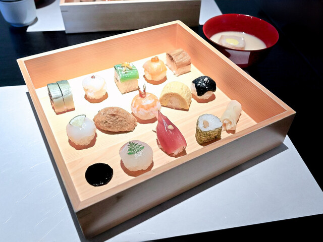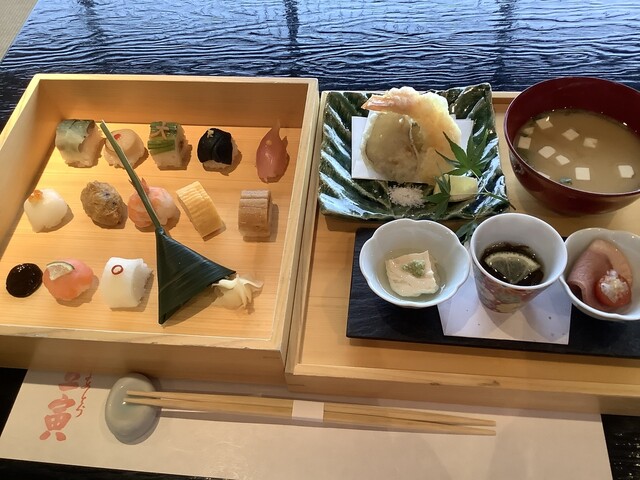 お昼は『豆すし豆皿膳』と『豆すし膳』の二つ。夜は『豆すし懐石』や旬の食材を織り込んだ『おまかせ懐石』などが味わえます。お正月、立春、祇園祭、お月見など季節や祭事を様々な形で取り入れておりますので、来店する度に移ろうメニューでおもてなし致します。