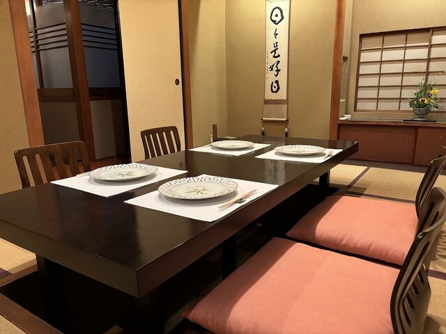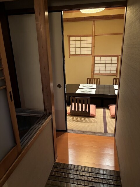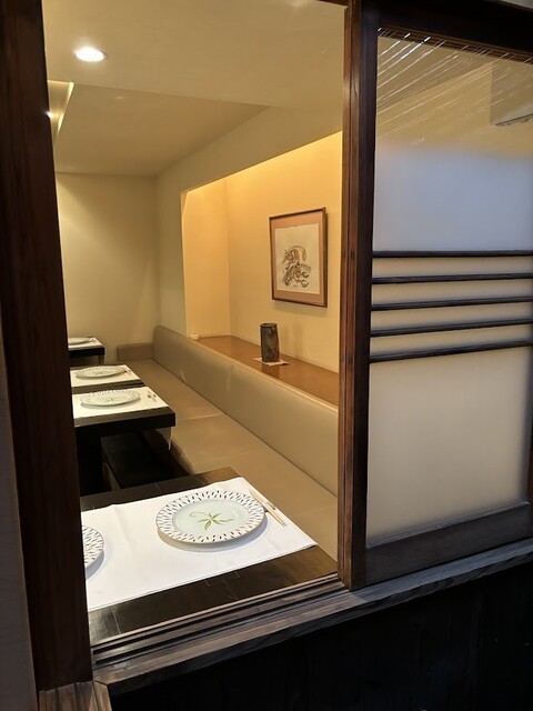 2F席は、おまかせコースのみで、お願い致します。 2F 和室テーブル席4卓10席 2F 和室掘り炬燵席1卓5席 個室料 一部屋 \5,500 頂戴いたします。