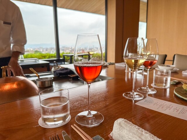 シェフのおまかせコースに合わせてご用意しているのが、ソムリエによるアルコール類のペアリング。ワインを中心に日本酒やカクテルなど、厳選されたペアリングを心ゆくまでお楽しみいただけます。シェフ渾身の料理とソムリエにより料理の旨味を最大限に引き立てるよう計算されたお酒のマリージュをご堪能ください。