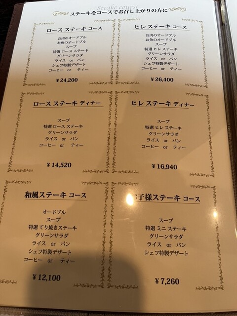 • ステーキ、ハンバーグ、洋食