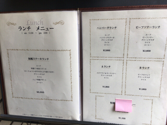 • ステーキ、ハンバーグ、洋食