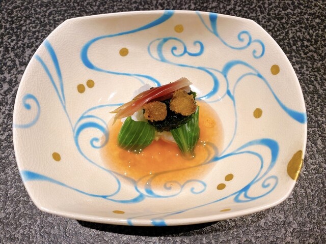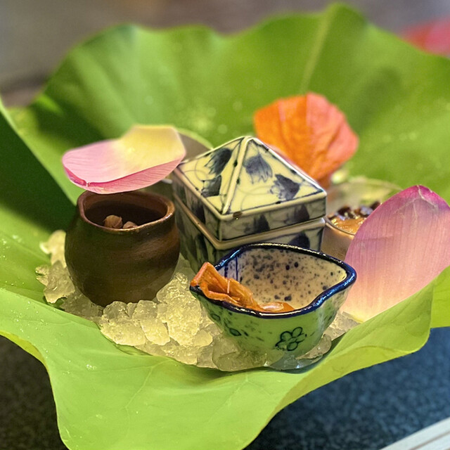 星のや京都の料理は、京料理には欠かせない「うまみ」を、世界の素材から引き出した会席料理です。季節の彩りと、伝統的でありながら新しさのある味わいを一品一品に詰め込みました。
