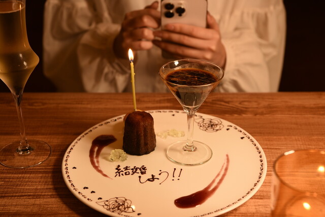 記念日、プロポーズ、サプライズ対応させて頂きます。ご予約時にご相談ください。ケーキ、花束、写真撮影のご注文承ります。
