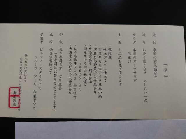 お店のHP http://www.yugyoan.co.jp/sendai/ 参照