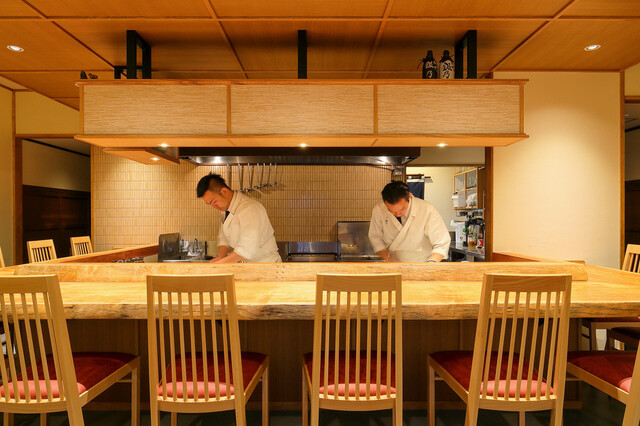 カウンターは12席。お1人様も大歓迎!一枚板を使ったこだわりのカウンター席です。