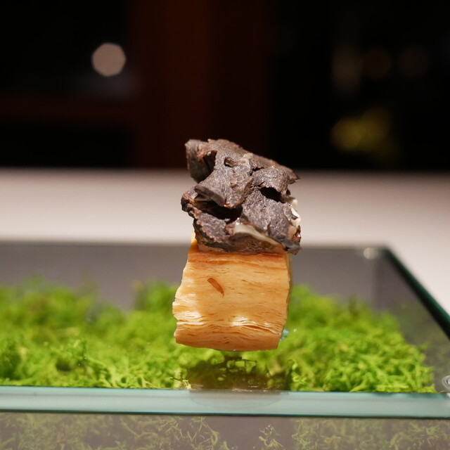 コンセプト「水のジビエ」は、生命の源である水が育む森の恵みから生まれました。清流に棲む川魚、水を求めて森を駆ける鹿や猪、水辺に集う鴨など、豊かな自然の営みから得られる食材すべてをこの名のもとに料理へ昇華させています。なかでも海のない信州で、コンセプトの核としているのが川魚です。岩魚、鱒、鮎、山女魚など、多様な川魚に真摯に向き合い、その独自の食感や味わいを活かすフランス料理を追求しています。