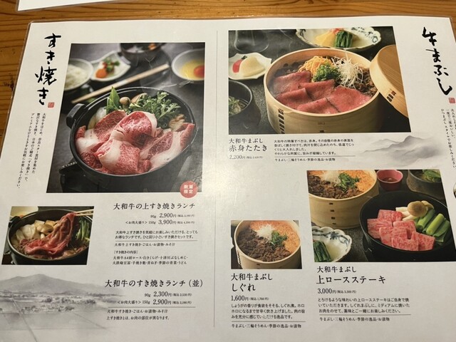 割り下にもこだわったすき焼きをはじめ、自慢のごはんに大和牛をのせたひつまぶしスタイルの「牛まぶし」も必見。
