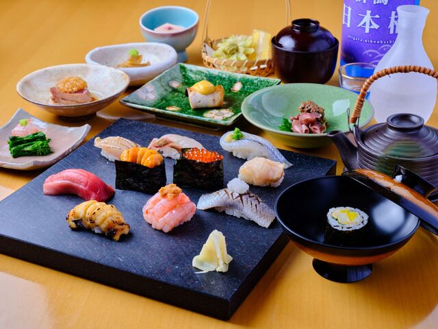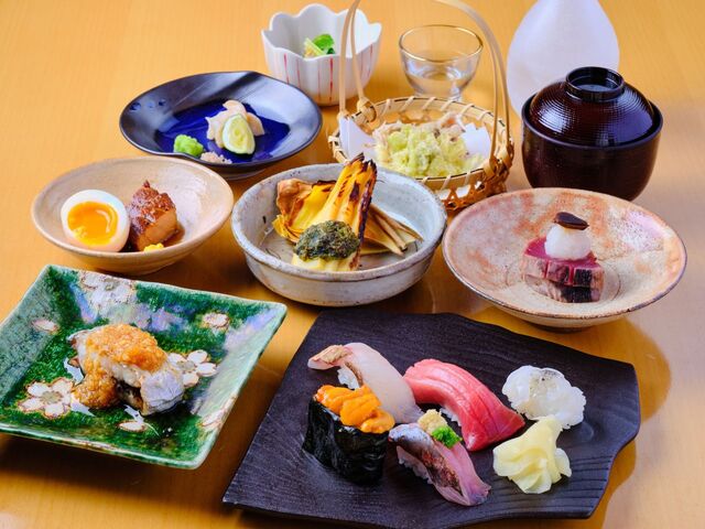 旬の食材や地魚をふんだんに使用したコースをご用意しております。『おつまみコース』では、一品料理をメインにご提供。季節によって様々に変化する逸品をお召し上がりください。最後にはお寿司5貫もお楽しみいただけます。また、お寿司をメインにご堪能いただける『鮨コース』もおすすめ。上質なお寿司8貫と四季折々の一品料理を、身も心も満たされる大満足の内容でお届けいたします。